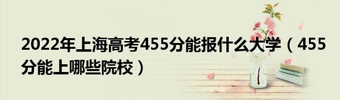 大家好,乐儿来为大家解答以下问题,2022年上海高考455分能报什么大学,455分能上哪些院校很多人还不知道,现在让我们一起来看看吧!