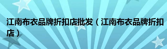 江南布衣品牌折扣店批发(江南布衣品牌折扣店)