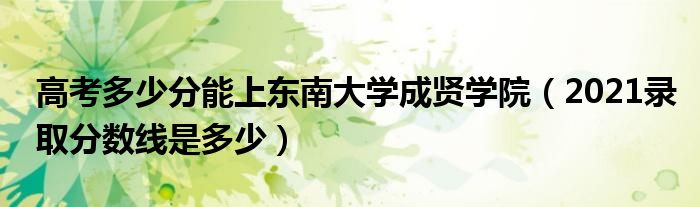 高考多少分能上东南大学成贤学院(2021录取分数线是多少)
