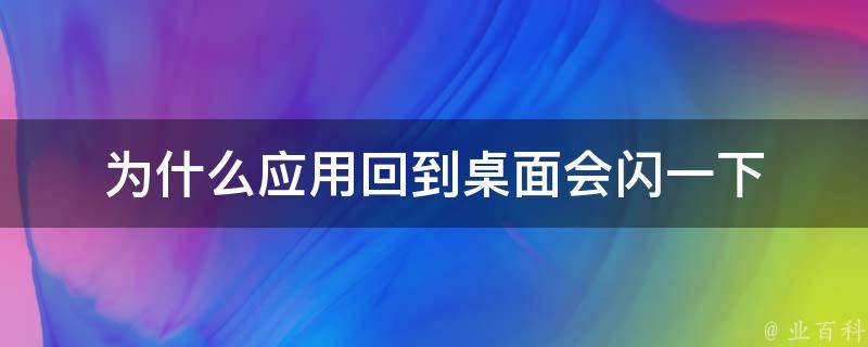 1、操作系统过渡效果:许多操作系统都会在切换应用程序时应用过渡效果,例如淡入淡出或动画效果。这些过渡效果可以创建流畅的用户体验,但在切换到桌面时可能会导致应用程序图标闪动一下。