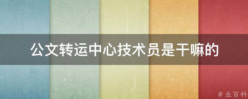 公文转运中心技术员是干嘛的