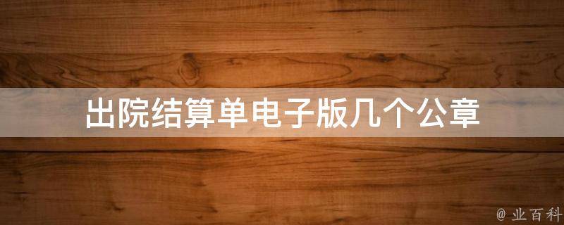 最佳答案视情况而定。具体的出院结算单电子版所需的公章数量可能因地区、医院、相关法规的不同而有所差异,数量并不统一。可能有:医院或医疗机构公章、医生签名章、财务章或会计章、监管部门章或相关部门的公章等。出院结算单是由医院或医疗机构提供的,因此通常需要医院的公章确认结算单的真实性和有效性。