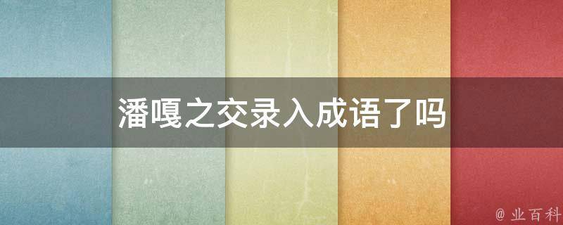 潘嘎之交没有录入成语。潘嘎之交是网络用语,指潘长江和《小兵张嘎》中嘎子的饰演者谢孟伟的交情,又指行业内地位和资历较高的前辈,通过假意劝告年轻人,使自己在行业竞争中处于有利地位的行为,这个词语也可以用来开玩笑或调侃朋友之间的关系。