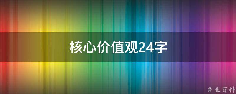 最佳答案核心价值观24字是指:富强、民主、文明、和谐、自由、平等、公正、法治、爱国、敬业、诚信、友善。核心价值观是指在特定社会或文化背景下,被认定为普遍适用、具有指导作用的一组核心价值观念。这些核心价值观旨在引导人们在思想、行为和社会交往中培养积极向上的价值观念,推动社会的和谐与发展。