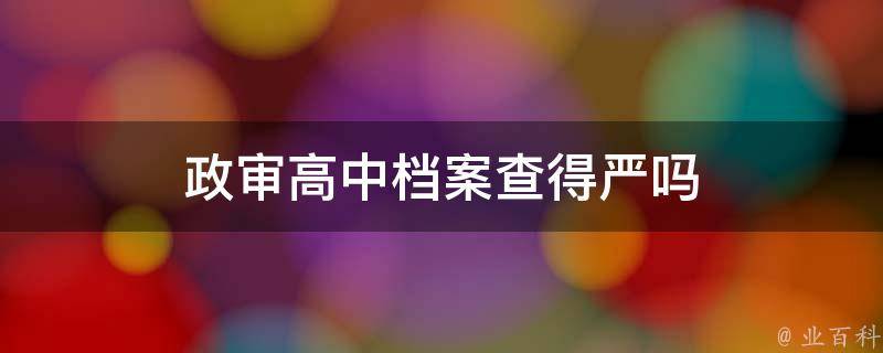 最佳答案政审高中档案查得严。高中学历是前置学历,是学历审查最重要的方面之一。公务员政审主要包括实地考察和审查档案两方面,实地考察就是去考生所在的工作单位(应届生去学校)、居住地了解考生德能勤绩等方面的表现,去考生户口所在地派出所考察考生是否有违法违纪行为,报考公检法的考生还要考察其直...