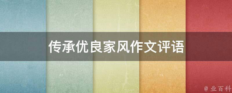 2、通过具体的例子和细致的描写,深入剖析了传承优良家风的意义和价值,富有感染力。