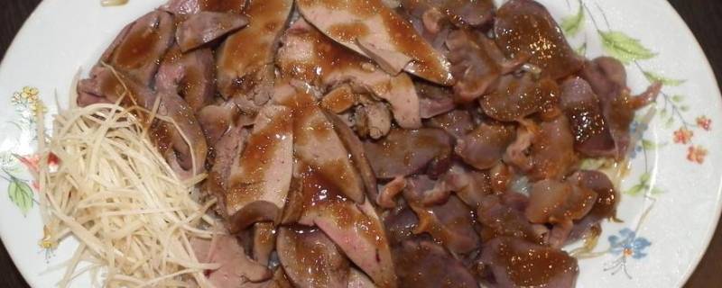 下鹅心翻炒3—4分钟后烹入料酒,去腥。
