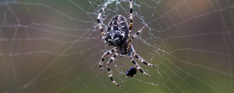 腹部。蜘蛛的身体分为头胸部和腹部,腹部的丝腺可以混合产生不同种类的丝线,这些丝腺会通过尾部很小的孔眼喷出去,遇到空气就会凝结成有粘性的丝,就会形成蜘蛛网。蜘蛛网除了能捕食昆虫外,还可织成袋子将蜘蛛蛋装起来。