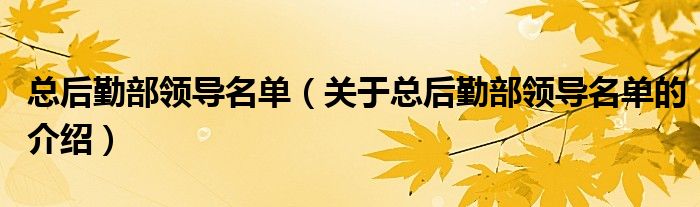 总后勤部领导名单(关于总后勤部领导名单的介绍)