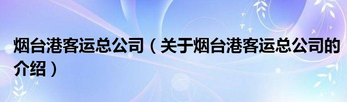 烟台港客运总公司(关于烟台港客运总公司的介绍)