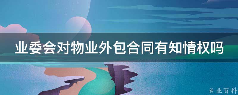 业委会对物业外包合同有知情权。业主对物业服务的情况享有知情权,保障业主的知情权便于业主行使监督权,从而维护自身的权益。物业服务合同一般是业委会与物业签订的,由社区监督,合同内容应该对业主公示。业主可以找业委会,要求查看合同内容,物业公司无权拒绝业委会的要求。