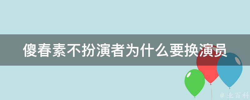 傻春素不扮演者为什么要换演员