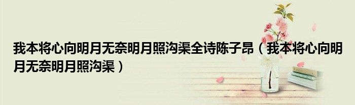 关于我本将心向明月无奈明月照沟渠全诗陈子昂,我本将心向明月无奈明月照沟渠这个很多人还不知道,今天菲菲来为大家解答以上的问题,现在让我们一起来看看吧!