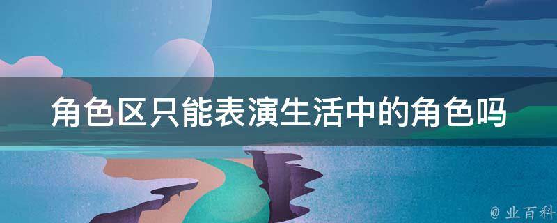 角色区只能表演生活中的角色。角色区通常是指一种表演形式,其中演员扮演不同的角色,模拟生活中的情景。因此,角色区可以表演生活中的角色,例如,在音乐剧或话剧中,角色区通常是演员扮演不同角色的区域,这些角色可以是生活中的人物,也可以是虚构的角色。