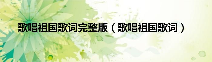 关于歌唱祖国歌词完整版,歌唱祖国歌词这个很多人还不知道,今天菲菲来为大家解答以上的问题,现在让我们一起来看看吧!