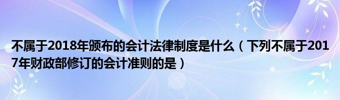 关于不属于2018年颁布的会计法律制度是什么,下列不属于2017年财政部修订的会计准则的是这个很多人还不知道,今天菲菲来为大家解答以上的问题,现在让我们一起来看看吧!