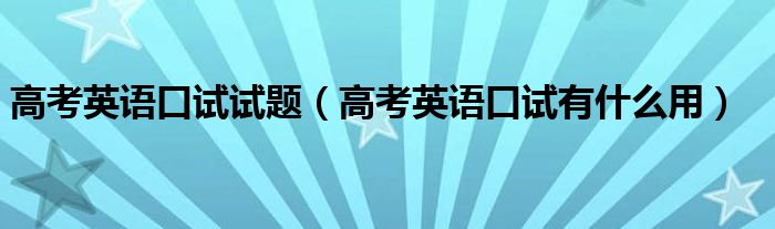 关于高考英语口试试题,高考英语口试有什么用这个很多人还不知道,今天菲菲来为大家解答以上的问题,现在让我们一起来看看吧!