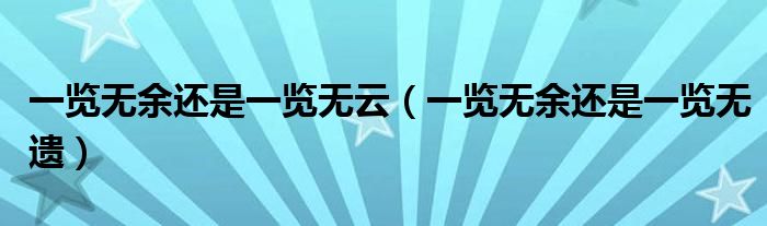 大家好,小联来为大家解答以上的问题。一览无余还是一览无云,一览无余还是一览无遗这个很多人还不知道,现在让我们一起来看看吧!