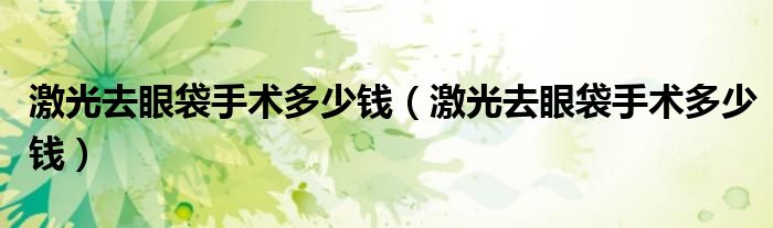 10、那么,激光去眼袋手术多少钱?大致价格在3000-6000元左右。