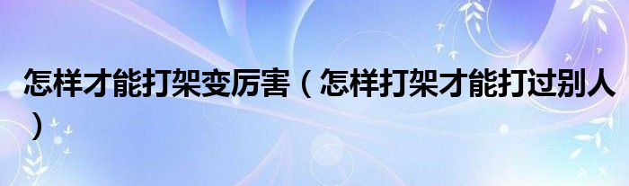 怎样才能打架变厉害(怎样打架才能打过别人)
