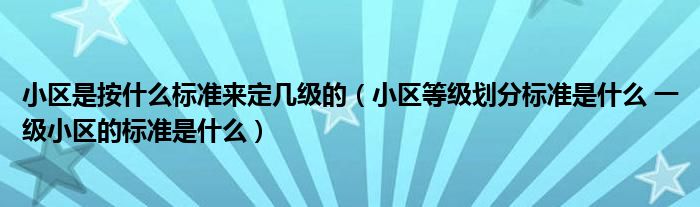 关于小区是按什么标准来定几级的,小区等级划分标准是什么 一级小区的标准是什么这个很多人还不知道,今天菲菲来为大家解答以上的问题,现在让我们一起来看看吧!