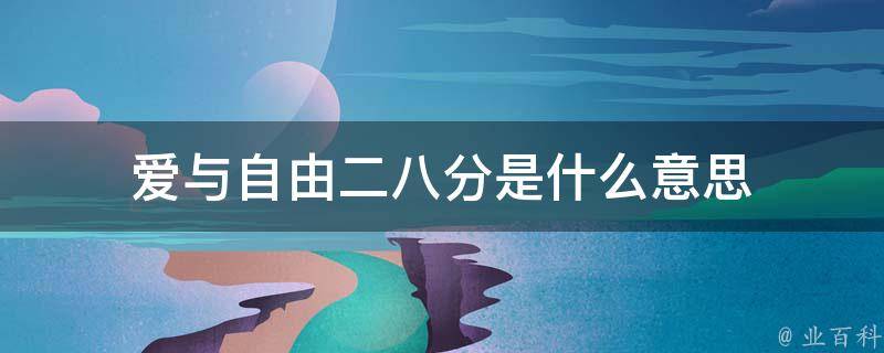 爱与自由二八分的意思是爱与自由在他的人生中,他的爱情占人生的百分之二十,而自由在他人生中的重要程度占百分之八十。也就是说,她的人生如果打一百分,自由占八十分,而爱情只占二十分,就是相当于她比较看重自由。