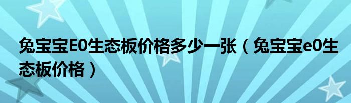 大家好,小联来为大家解答以上的问题。兔宝宝E0生态板价格多少一张,兔宝宝e0生态板价格这个很多人还不知道,现在让我们一起来看看吧!