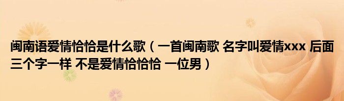 关于闽南语爱情恰恰是什么歌,一首闽南歌 名字叫爱情xxx 后面三个字一样 不是爱情恰恰恰 一位男这个很多人还不知道,今天菲菲来为大家解答以上的问题,现在让我们一起来看看吧!