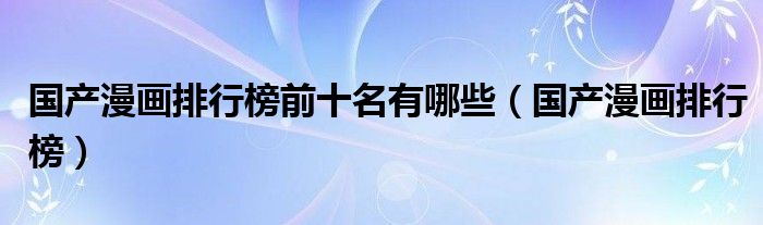 关于国产漫画排行榜前十名有哪些,国产漫画排行榜这个很多人还不知道,今天菲菲来为大家解答以上的问题,现在让我们一起来看看吧!
