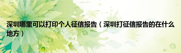 关于深圳哪里可以打印个人征信报告,深圳打征信报告的在什么地方这个很多人还不知道,今天菲菲来为大家解答以上的问题,现在让我们一起来看看吧!