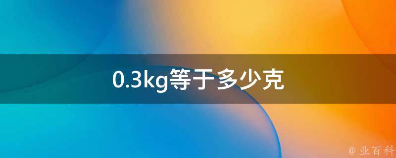 0.3kg等于300克。在国际单位制中,质量的单位是千克,符号为kg。常见的克的换算:1千克=1000克;1克=0.001千克;1克=1000毫克;1克=1000000微克,这些换算都是按照十进制计算的。