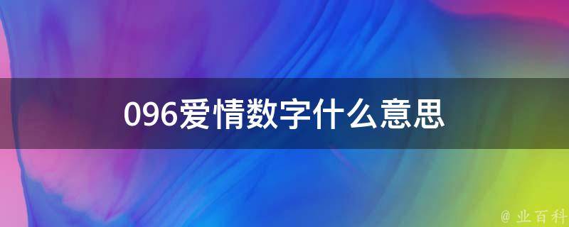 096爱情数字的意思是无限大的爱与承诺。096是一种特殊的数字组合,其中0代表无限大的爱,9代表永恒的承诺,6代表顺利。因此,096爱情数字象征着无限大的爱与承诺,以及顺利的恋爱关系。它代表了一种深厚的感情和长久的关系,是一种美好而珍贵的爱情象征。