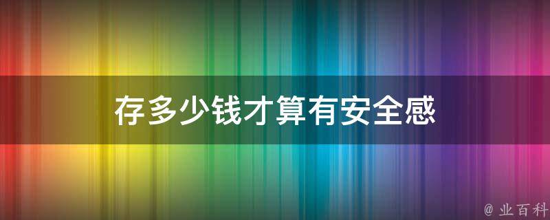 存多少钱才算有安全感