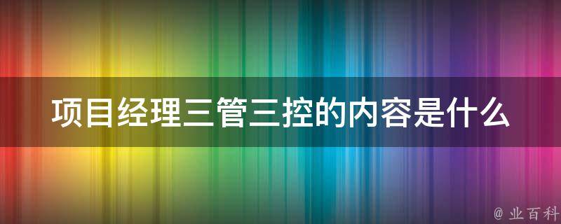 三管是安全管理、合同管理、信息管理;三控是成本控制、质量控制、进度控制;一协调是各种组织关系协调。成本控制包括成本计划、成本控制、成本核算、成本分析和成本考核。进度控制包括及时安排人员、物资、装备、工期,保证工程按进度实施。