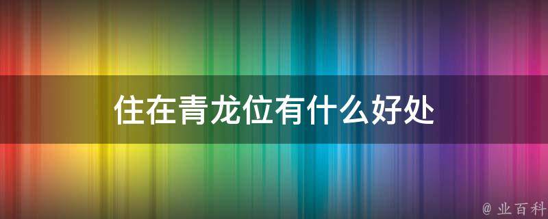 青龙位是房屋风水比较好的位置,住在青龙位可以得到青龙保护,让家里的运势逐渐旺盛起来。风水中青龙位的吉凶宜忌家居风水方位中,青龙是四灵之首,面朝大门外,左手边为青龙位,地理方位上,东边为青龙位。