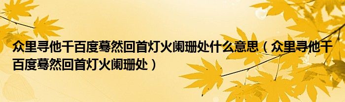 大家好,小联来为大家解答以上的问题。众里寻他千百度蓦然回首灯火阑珊处什么意思,众里寻他千百度蓦然回首灯火阑珊处这个很多人还不知道,现在让我们一起来看看吧!