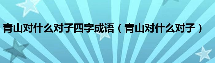 大家好,我是小科,我来为大家解答以上问题。青山对什么对子四字成语,青山对什么对子很多人还不知道,现在让我们一起来看看吧!