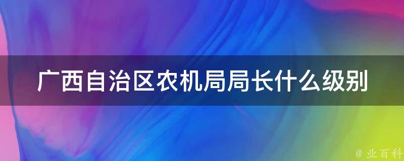 广西壮族自治区农机局局长是正厅级别。正厅级别是厅局级正职,又称正厅局级,是中国的一个公务员级别,为行政五级,厅局级正职及其以上级别为高级领导干部。厅局级也就是在局中担任局长的级别。