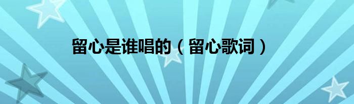 大家好,我是小科,我来为大家解答以上问题。留心是谁唱的,留心歌词很多人还不知道,现在让我们一起来看看吧!
