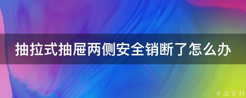 抽拉式抽屉两侧安全销断了可以尝试以下方法修复:把抽屉尽量往外拉,这时出现一个长条黑色锥形卡扣和锥形折断的塑料条,然后找一个较大的手电筒照射黑色锥形卡扣和锥形折断的塑料条,同时用螺丝刀向下按黑色的锥形卡扣,通过摩擦力的作用,把卡扣和塑料条弄断后,即可抽出断掉的塑料条,抽屉也能完整地装回去。