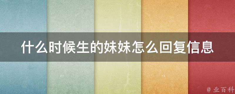 别人问什么时候生的妹妹,可以直接模糊回复一个时间,比如是2023年8月20日生的,就回答8月生的。回复消息时,不要立即回复,适当留一点时间。在回复的内容中,要恰当地表达个人观点和态度,其次要注意用语,不能带有冒犯性和政治上的敏感言论。