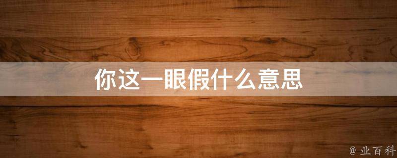 你这一眼假意思是假货,不是正品。是一种网络梗,常常在社交媒体上出现,例如:你这鞋一眼假,这个梗常常是在一些球鞋爱好者或者潮流爱好者之间使用,这些人对鞋子真假有很高的辨识能力。信息泛滥的世代,随着新新人类不断涌现,新词语也层出不穷。