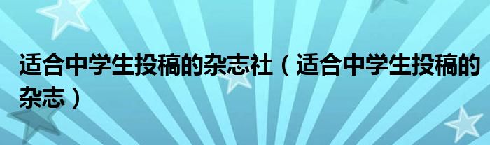 大家好,小联来为大家解答以上的问题。适合中学生投稿的杂志社,适合中学生投稿的杂志这个很多人还不知道,现在让我们一起来看看吧!