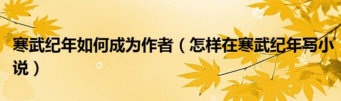 寒武纪年如何成为作者(怎样在寒武纪年写小说)