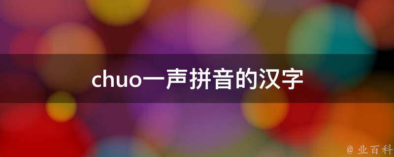 chuo一声拼音的汉字有:戳、踔、趠、逴、繛。汉语拼音是中华人民共和国的汉字拉丁化方案,于1955年-1957年文字改革时被原中国文字改革委员会(现国家语言文字工作委员会)汉语拼音方案委员会研究制定。该拼音方案主要用于汉语普通话读音的标注,作为汉字的一种普通话音标。