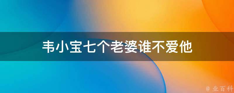 韦小宝七个老婆都很爱他。韦小宝的七个老婆分别是曾书书、阿珂、马昭菡、双儿、建宁公主、苏荃和沐剑屏,这七个老婆都对韦小宝产生过感情。韦小宝金庸武侠小说《鹿鼎记》及其衍生作品中的男主角。