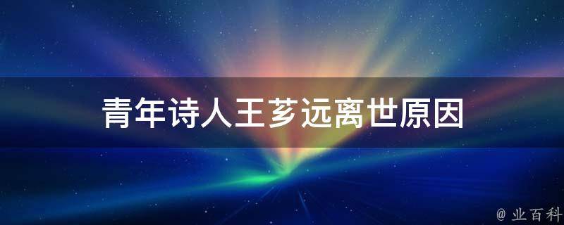 青年诗人王芗远离世原因是自杀。王芗远处于痛苦的状态当中无法自拔,在长时间的消耗当中逐渐抑郁,这就是他离去的真正原因,他选择的方式是跳楼。他出事那天是2023年10月4日,跳下来后受了重伤,送往医院抢救无效最终死亡。