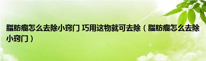 大家好,乐天来为大家解答以下的问题,脂肪瘤怎么去除小窍门 巧用这物就可去除,脂肪瘤怎么去除小窍门很多人还不知道,现在让我们一起来看看吧!