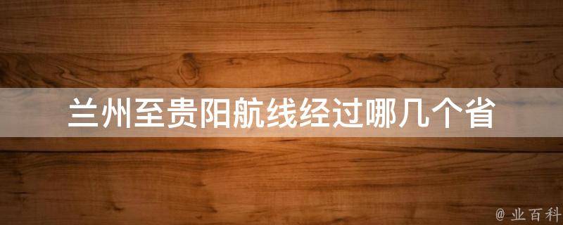 兰州至贵阳航线经过甘肃省、四川省、重庆市、贵州省。兰州至贵阳航线由兰州中川国际机场和贵阳龙洞堡国际机场运营,共有两家航空公司提供直飞航班,分别是中国南方航空公司和四川航空公司。