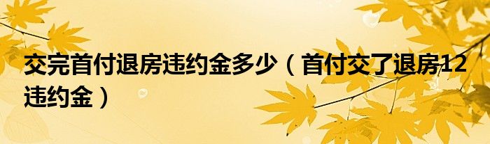 大家好,我是小科,我来为大家解答以上问题。交完首付退房违约金多少,首付交了退房12 违约金很多人还不知道,现在让我们一起来看看吧!